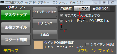 [キャプOP]→[レイヤードウィンドウも表示する]にチェックを入れます。