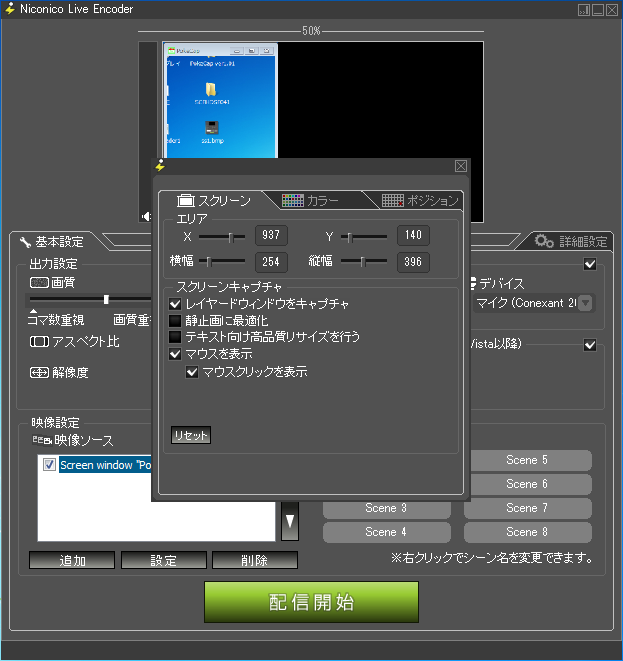 画面の設定をしてみるとわかりますが、この方法でPokeCapをキャプチャーした場合、どうしても思い通りに配置することができないと思います。